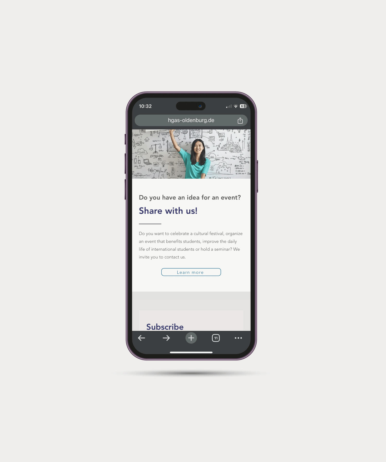 Die HGAS-Organisation unterstützt die internationale Studierendengemeinschaft an der CvO Universität Oldenburg durch drei Hauptaktivitäten:1. Beratung2. Organisation von Veranstaltungen3. Unterstützung bei der Umsetzung von Ideen, wie z.B. Projekten, Seminaren und EventsDie Website spielt eine zentrale Rolle für die Organisation und ermöglicht es den Studierenden, verschiedene Dienste online zu nutzen, wie z.B. die Buchung von Terminen, die Anmeldung zu Veranstaltungen, das Sammeln von Kontaktdaten und das Teilen von Ideen. Aufgrund der veralteten und ineffizienten Website haben wir eine vollständige Neugestaltung durchgeführt.